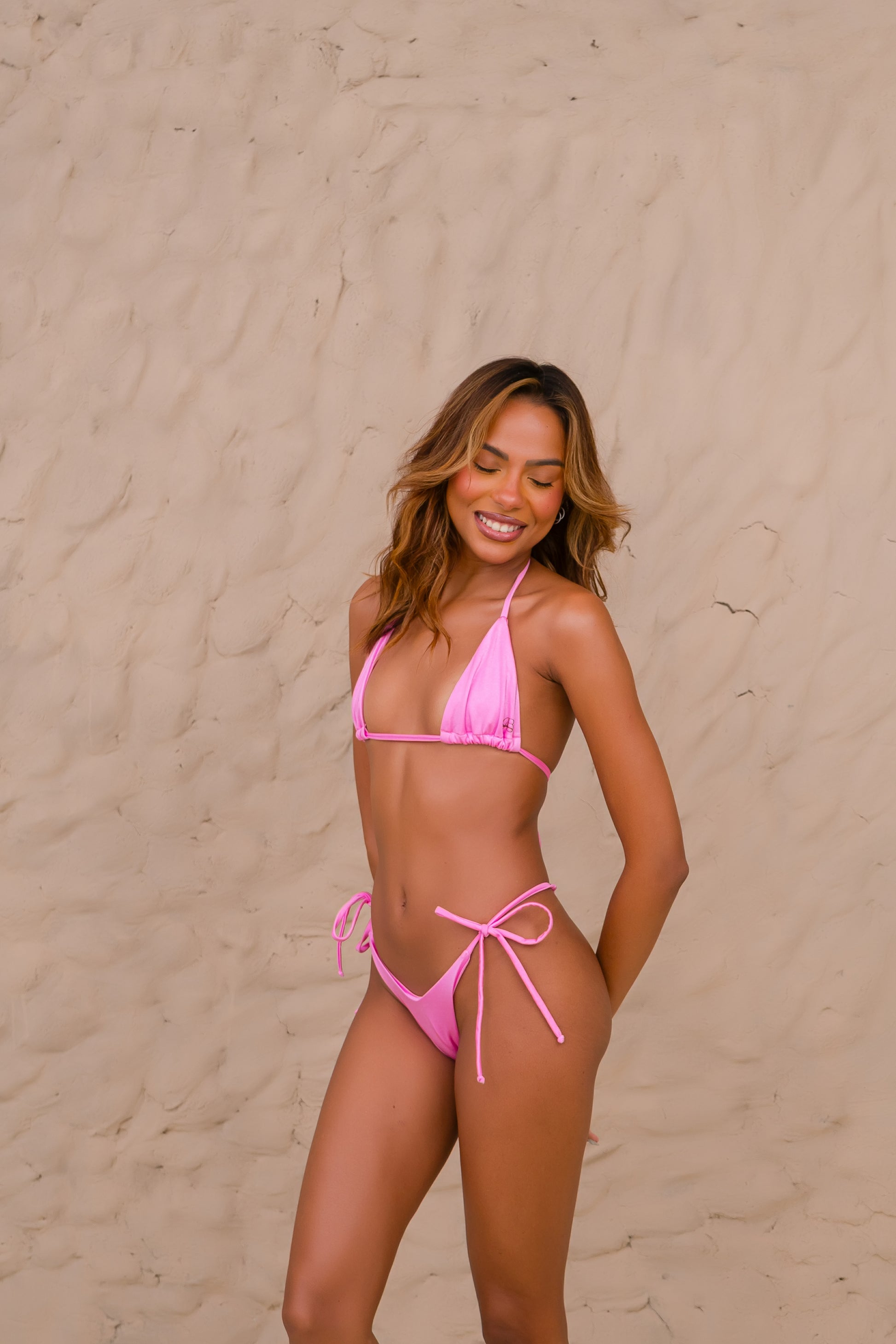 - Calcinha: Modelo asa delta, com laterais finas que alongam a silhueta, unindo sensualidade e estilo.